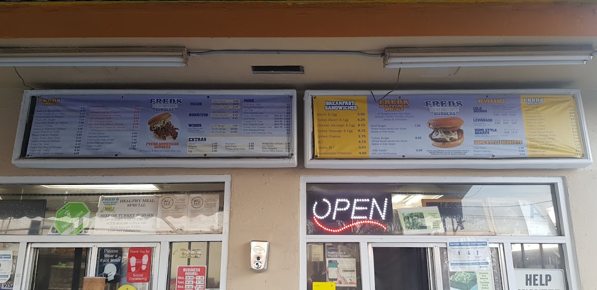This menu is appropriate for breakfast, casual lunches, or quick dinners. The items are prepared fresh and typically ordered for takeout or fast casual dining. The availability of fries and rolls alongside main dishes suggests a focus on complete meal combinations.